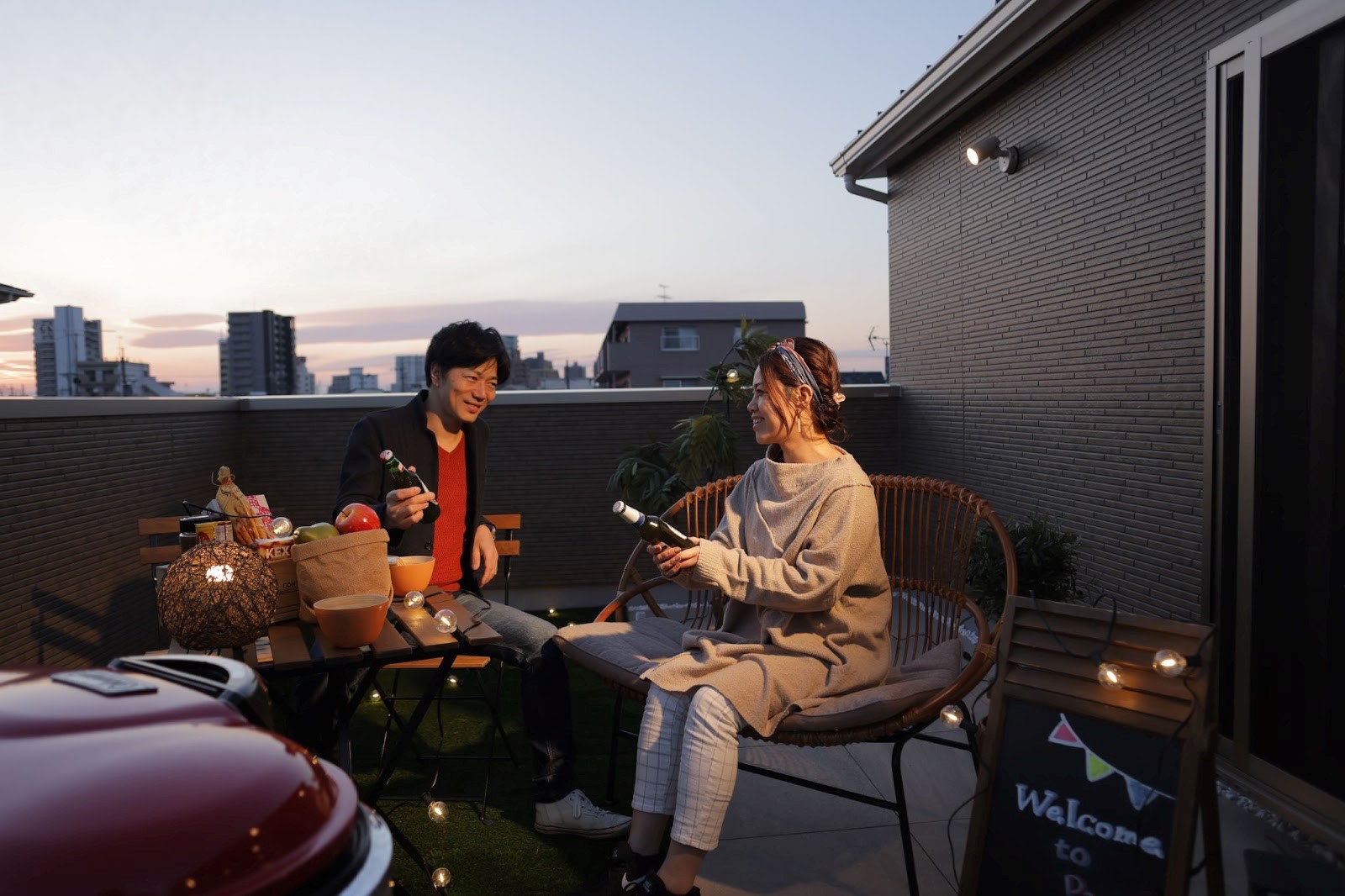 ルーフバルコニーに外部用コンセントを設置しておくのもおすすめです。BBQは炭を起こしたり片づけたりするのが大変で面倒だな・・・と思う方はホットプレートご飯という選択肢があります。コンセントに差すだけなので気軽にできますし、BBQ・お好み焼き・焼きそば・たこ焼き・お鍋など様々な料理をルーフバルコニーで楽しむことができます。