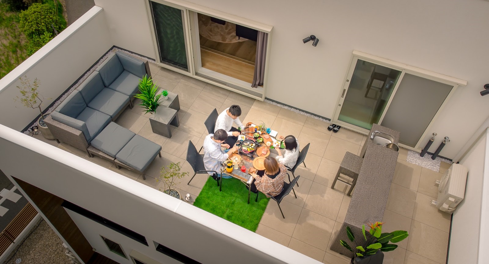 プライベート空間を維持したままBBQを楽しむことが屋上バルコニーでのBBQの醍醐味です。