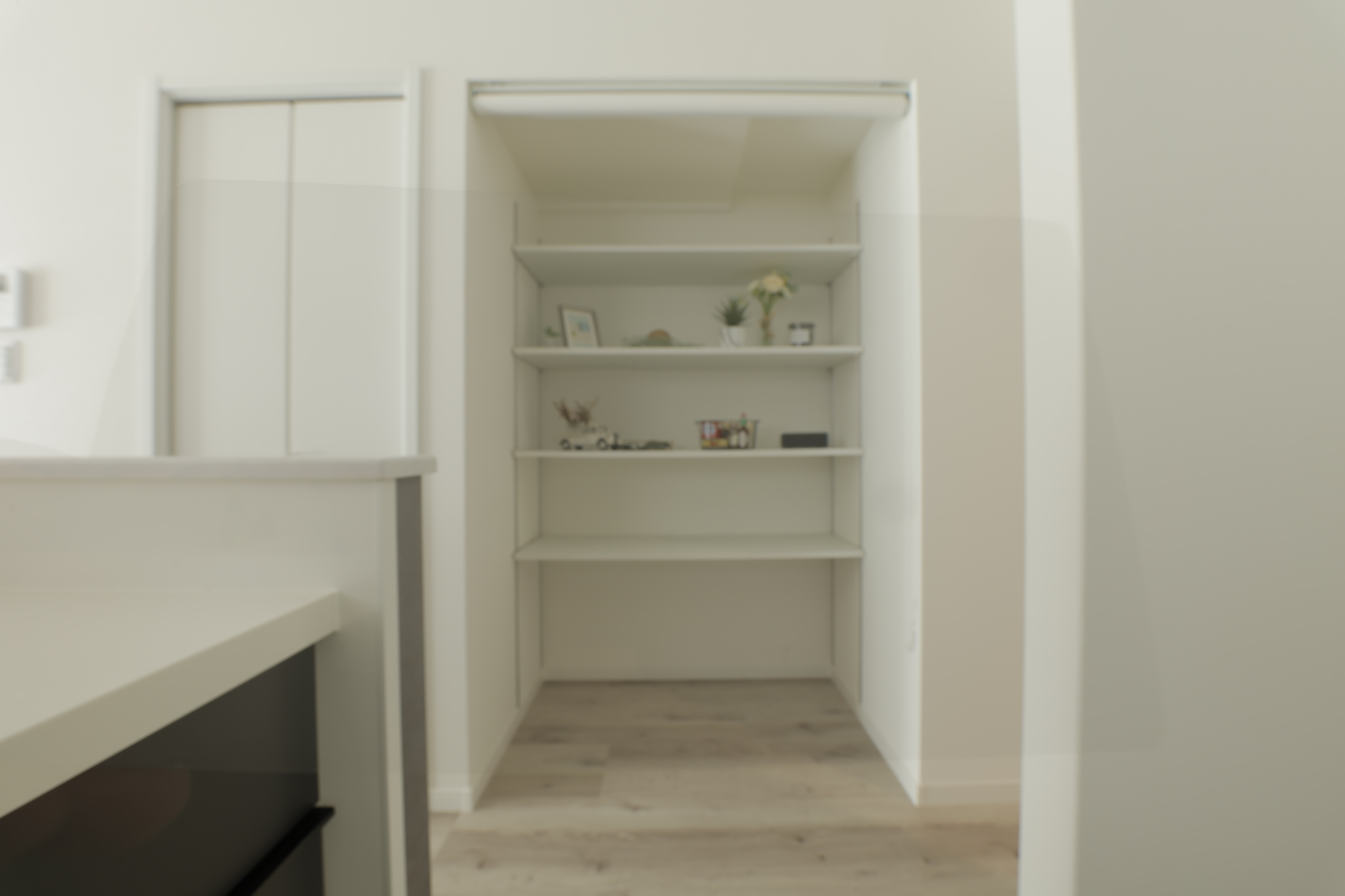 階段を作る場所によっては0.5坪ほどのスペースができるので、キッチン横のパントリーにしたり、洗面室のタオル置き、リビングの掃除グッズや季節ものを置くスペースとして活用できるでしょう。
