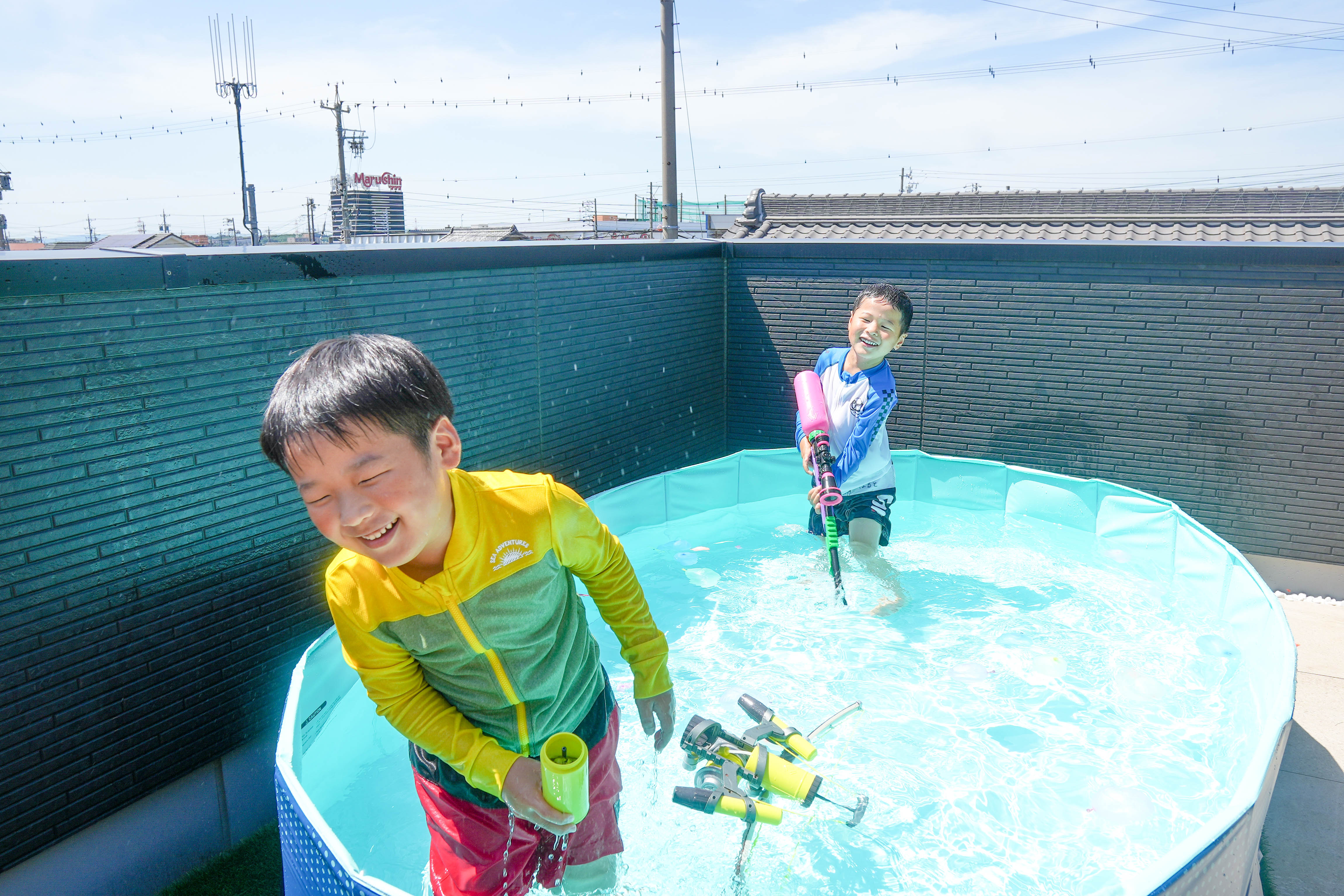 社宅での住める期間が決まっていたS様は4年ほど前から少しずつおうち探しを始めて様々な物件を見学されたそうです。子供たちが育っていく中で子供たちのことを考えたら今住んでいる環境は変えたくない!という奥様の想いを汲み、学区限定でのおうち探しをされました。希望エリアの土地価格が高騰する中、価格を重視するか、住み心地を重視するかという悩みは屋上庭園付3階建て住宅に出会い、解決しました。