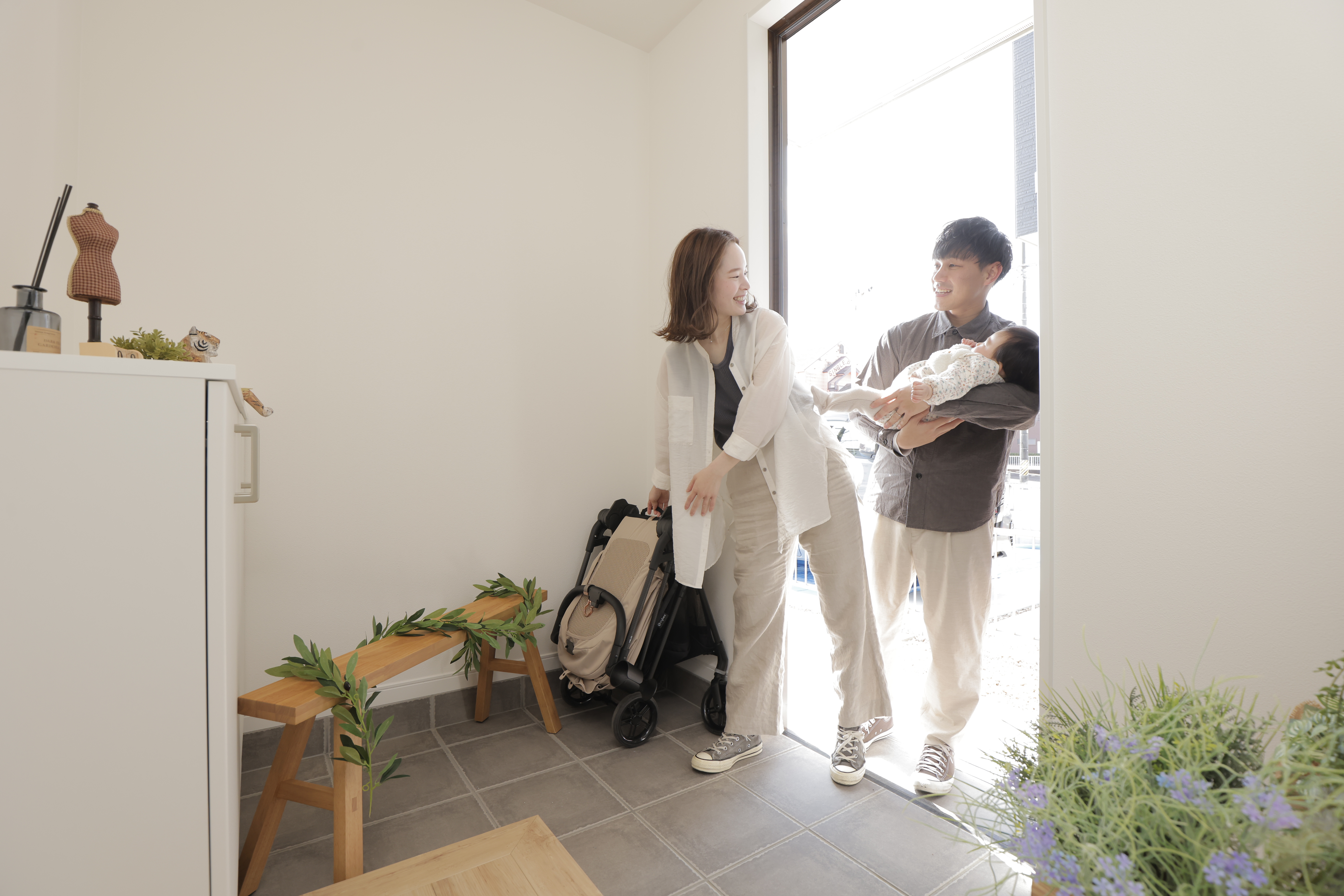 子供が生まれたら外出用にベビーカーが必要になります。ベビーカーをそのまま玄関においておくご家庭もあると思いますが、そうすると玄関スペースを圧迫して狭く感じプチストレスです。