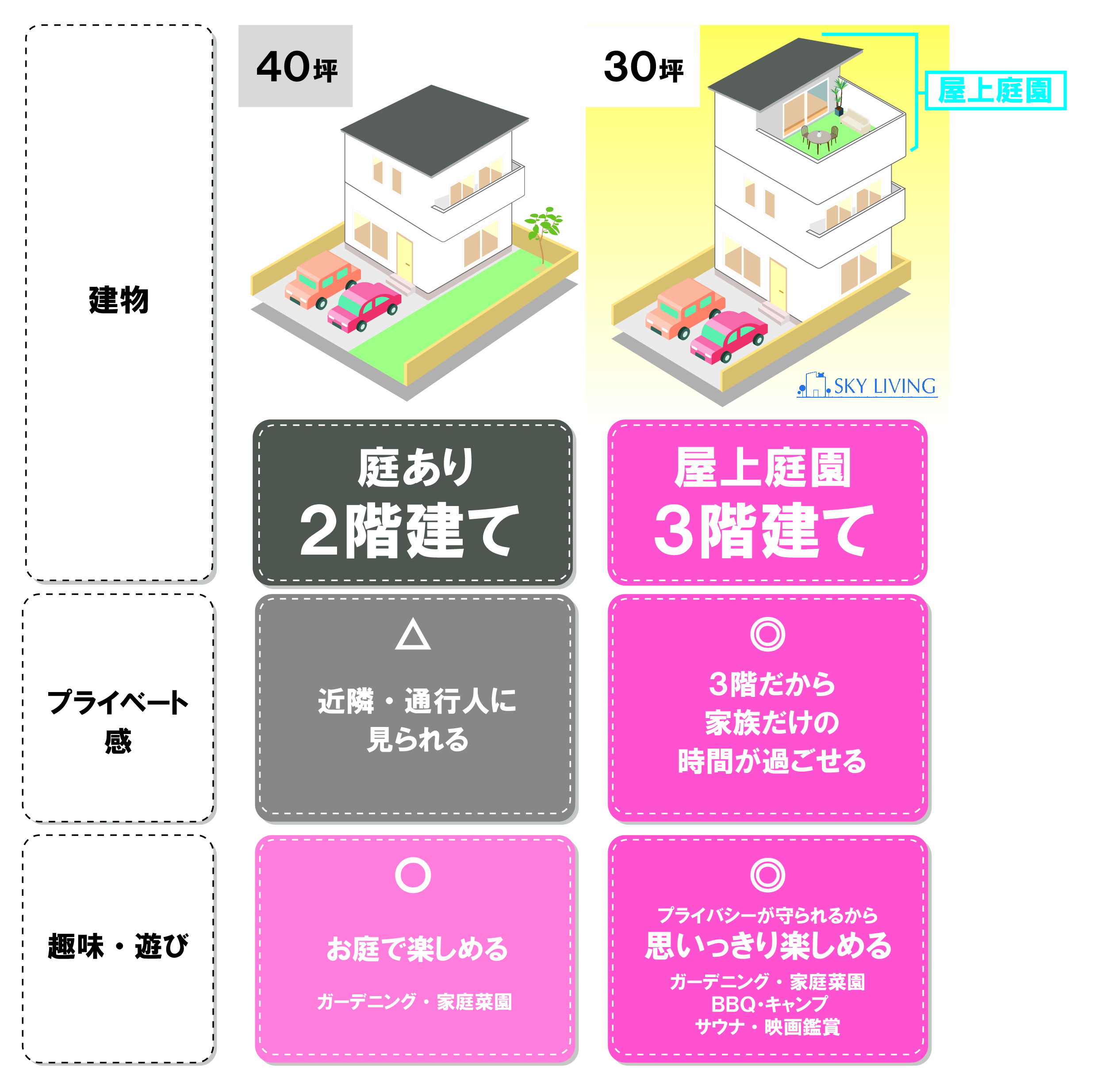 では、なぜわざわざ屋上に庭を設ける必要があるのでしょうか。「外に庭を設けたら?」「近くの公園に行ったら?」と考えることもあると思います。
