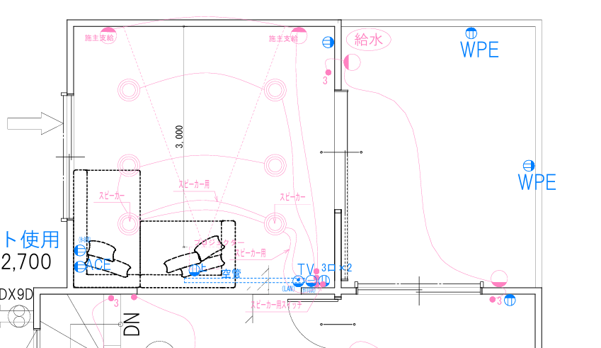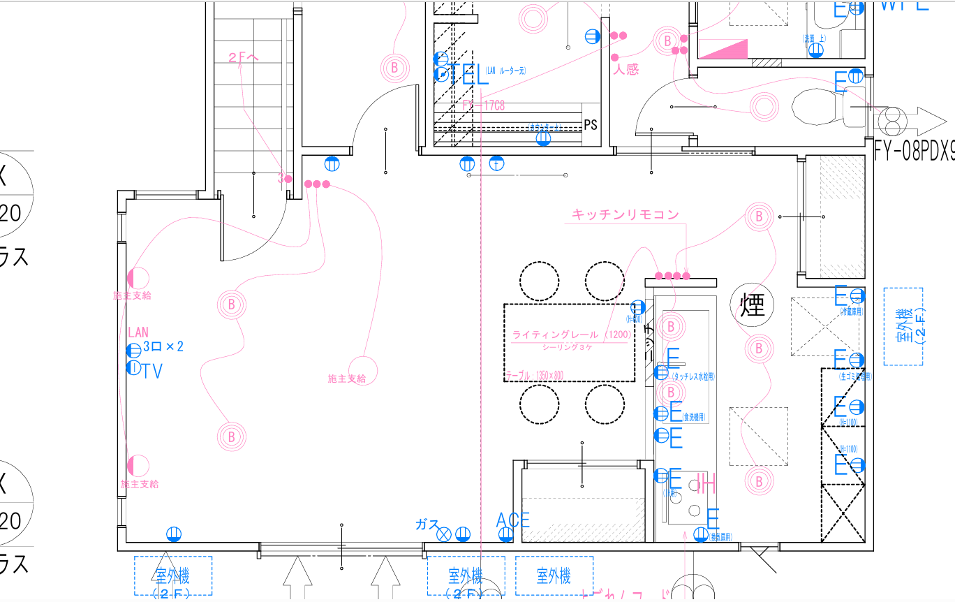 コンセントを考える際にTV線、ガス栓、HDMI用の空管などの計画も考えましょう。
