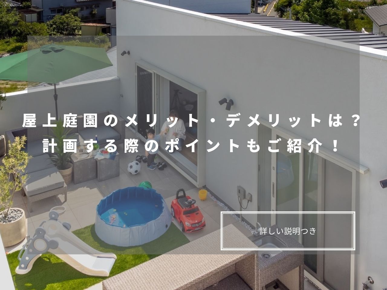 都市部の狭小地や住宅密集地において、「屋上庭園」は近年注目を集めるライフスタイルの選択肢となっています。限られたスペースを最大限活用し、住環境を豊かにするだけでなく、家族全員が楽しめる多目的な空間を提供する点で、多くの人に支持されています。本記事では、屋上庭園のメリット・デメリット、そして具体的な活用方法について詳しくご紹介します。BBQやプール、子育て・孫育て、さらにはペットと楽しむドッグランまで、幅広いアイデアを盛り込みました!