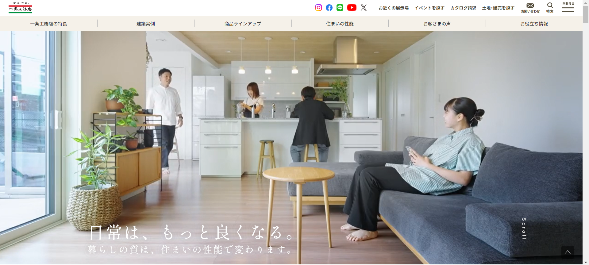 一条工務店は、断熱性能と耐震性を重視した住宅を提供する大手ハウスメーカーです。狭小住宅でも省エネ性能を最大限に活かした設計が特徴で、家全体の快適性が高いと評判です。