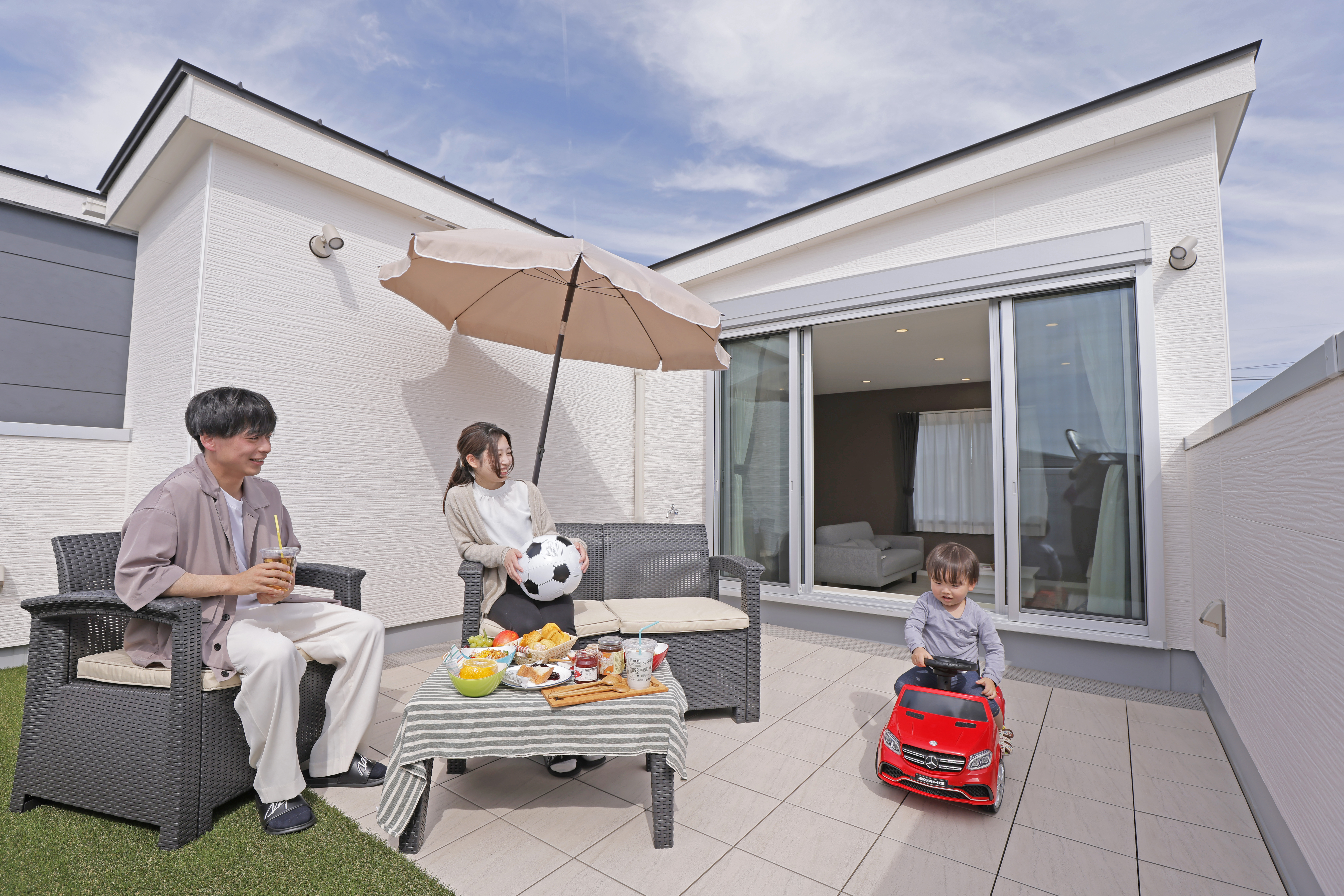 ・リラックススペースに:テーブルや椅子を置いて、家族でBBQを楽しむことも可能。