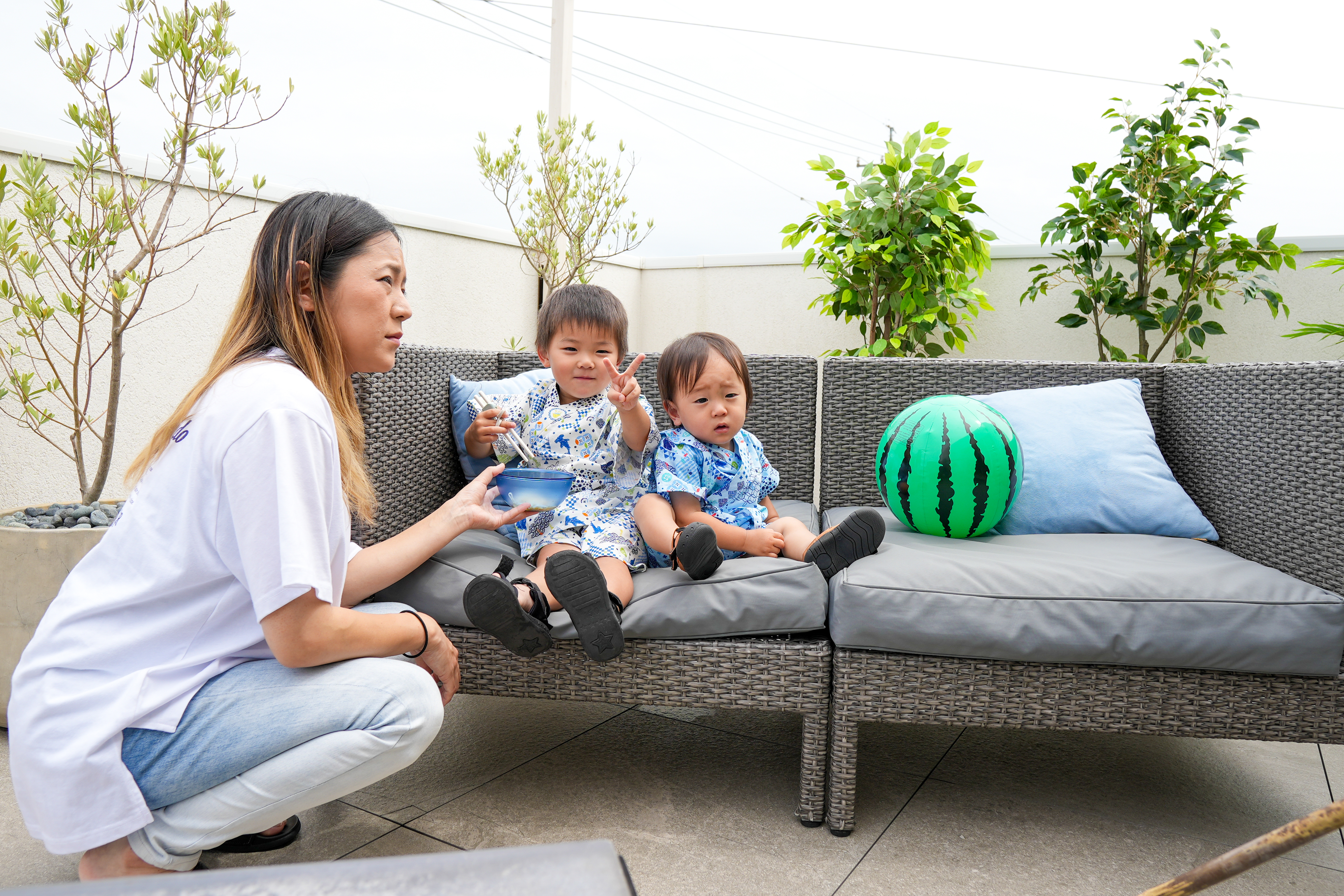休日にはおじいちゃん・おばあちゃんも招いて屋上ランチ