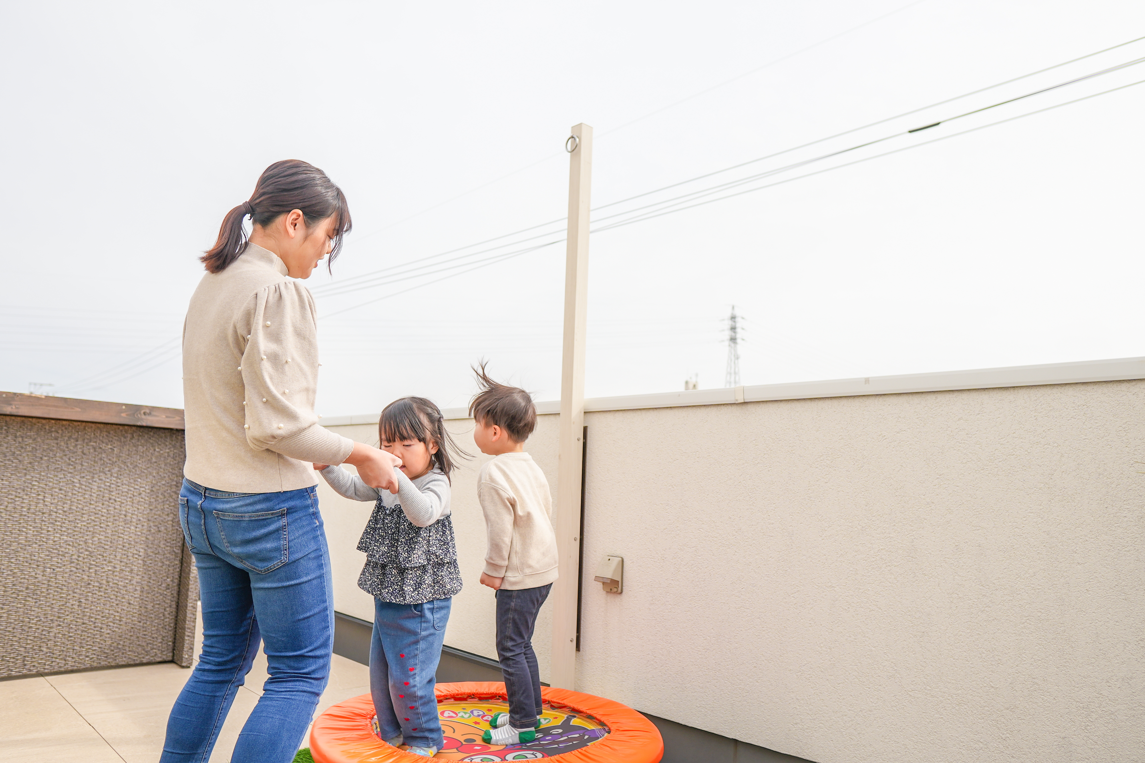 屋上なら、人目を気にせず“完全プライベート”な空間で遊べるのが最大のメリット。子どもが大声で笑っても、走り回っても、飛んだり跳ねたりしてもOK。音の面でも、屋上は周囲に響きにくいという利点があります。