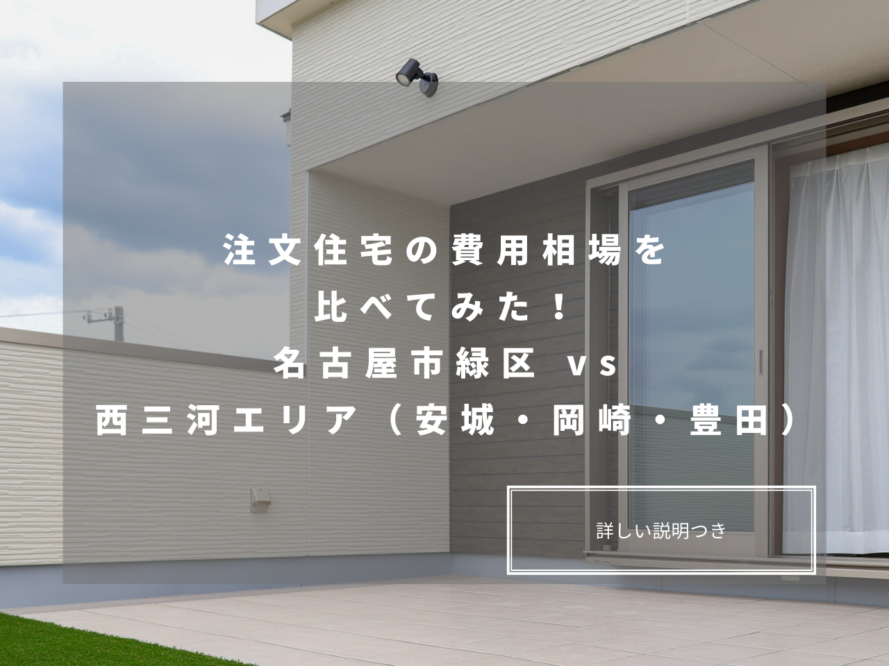 注文住宅の費用相場を比べてみた!名古屋市緑区 vs 西三河エリア(安城・岡崎・豊田)
