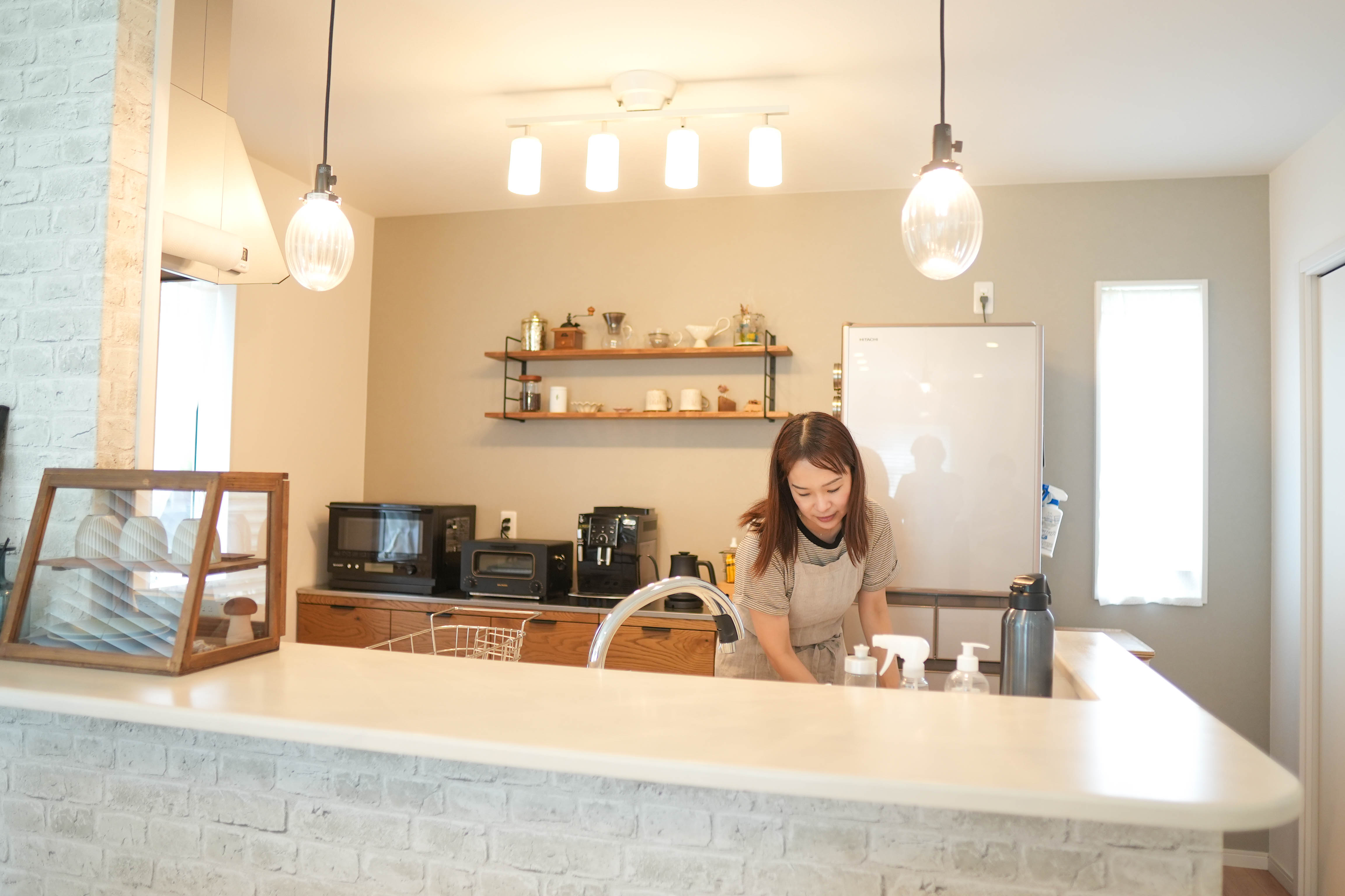 ご夫婦ともにインテリアにこだわりがあり、お気に入りの絵を壁に飾ったり、季節のスワッグを壁にかけて、キッチンの見せる収納でディスプレイを楽しんで、家中のあちこちが家族のお気に入りの場所に。