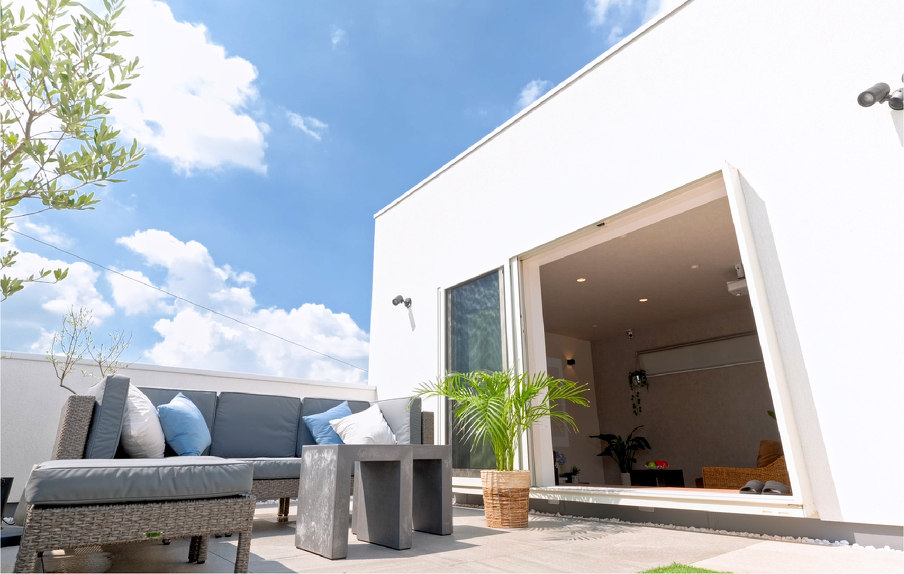 ホワイトの外壁が高級感を演出してくれて、より一層特別な空間に。