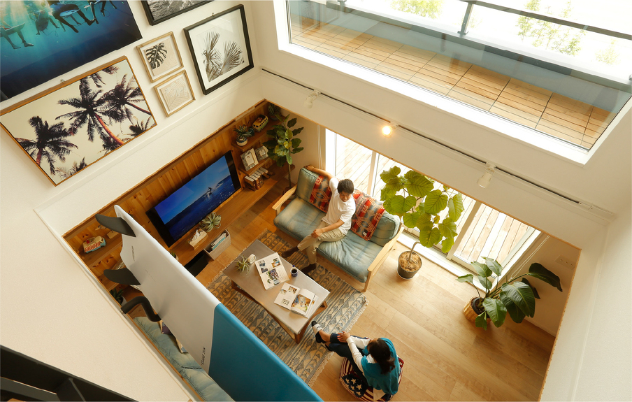 開放的な吹き抜けで、家族の存在が身近に感じる家族愛溢れる室内です。